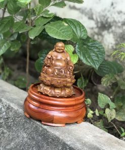 Tượng Di Lặc tọa đài sen gỗ bách xanh