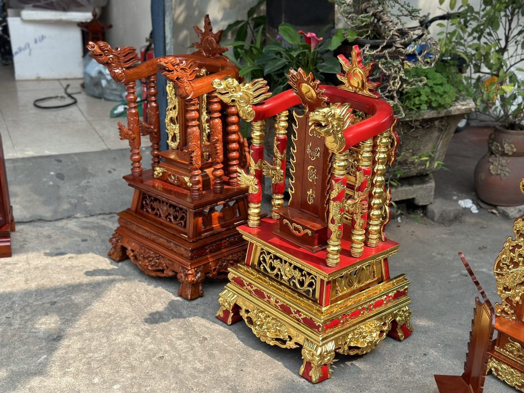 - Cuối cùng, ngai được phủ một lớp sơn bóng để bảo vệ bề mặt vàng. Giúp giữ được độ bền và vẻ đẹp theo thời gian.