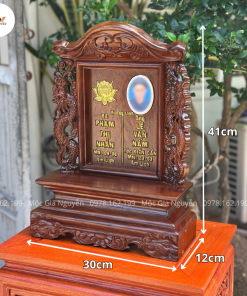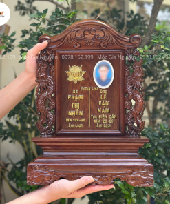 Bài Vị Đôi Gắn Ảnh Song Long Gỗ Hương 41Cm BA09
