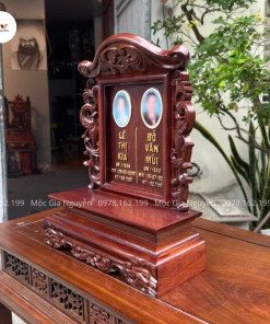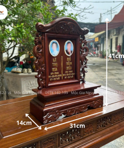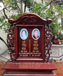 Thiết kế đôi có khung gắn ảnh tiện lợi: Bài vị có hai vị trí gắn ảnh, giúp lưu giữ chân dung tổ tiên một cách trang trọng.