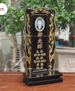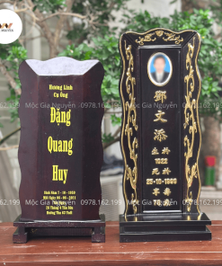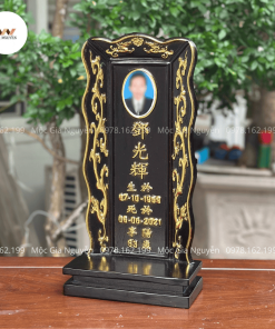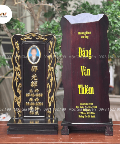 Bài Vị Gắn Ảnh Chữ Hán Gỗ Hương Dát Vàng Cao 41 cm BV82