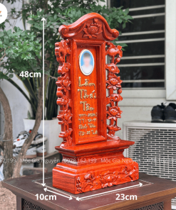 Kích thước chuẩn phong thủy: Bài vị có chiều cao 48cm, ngang 23cm, sâu 10cm. Phù hợp đặt trên bàn thờ đứng, bàn thờ treo, tủ thờ hoặc án gian. Kích thước này không chỉ hài hòa về thị giác mà còn nằm trong cung đẹp theo thước Lỗ Ban phong thủy.