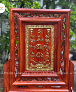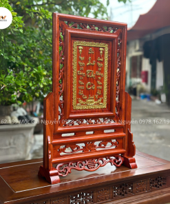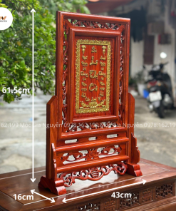 Tên sản phẩm: Bài Vị Gỗ Hương Hoa Lá Tây Dát Vàng BV56