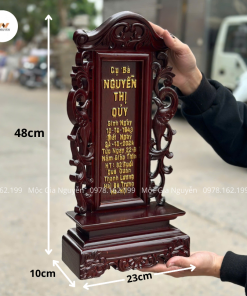 Kích thước chuẩn: Với kích thước cao 48cm, ngang 23cm, sâu 10cm. Bài vị phù hợp với nhiều không gian thờ cúng khác nhau.