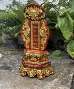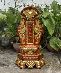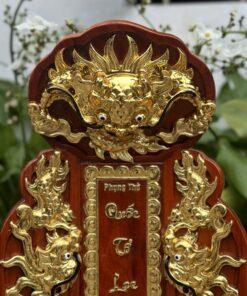 Bài vị thờ song long gỗ hương dát vàng MS80