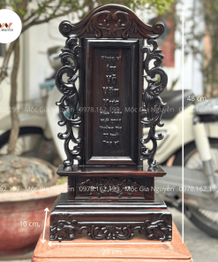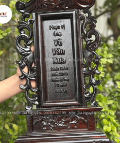 Bài vị thờ song phụng gỗ trắc BV64 là tác phẩm nghệ thuật điêu khắc đỉnh cao, kết hợp giữa vẻ đẹp thẩm mỹ và giá trị tâm linh sâu sắc. Với chiều cao 48cm, sản phẩm mang đến sự trang nghiêm và uy nghi cho không gian thờ cúng trong gia đình Việt.