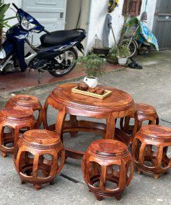 Bộ bàn ghế đôn trống gỗ hương cao cấp