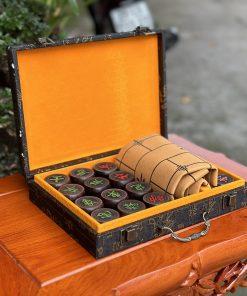 Chất liệu: Hộp gỗ lót nỉ sang trọng. Quân cờ làm bằng gỗ mun cao cấp. Bàn làm bằng da lộn mềm mại.