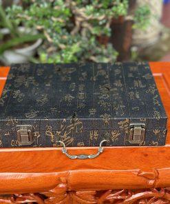 Kích thước: hộp đựng 18,5×20,5cm. Quân cờ 3,8cm. Bàn cờ 36,5x40cm.