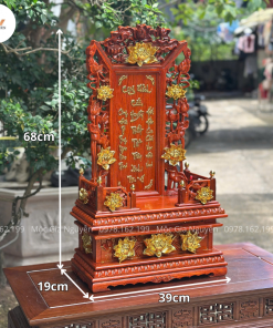 Kích thước cân đối: Cao 68 cm, ngang 39 cm, sâu 19 cm. Thích hợp đặt tại bàn thờ gia tiên, bàn thờ từ đường hoặc nhà thờ họ.