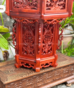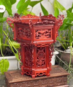 - Chất liệu gỗ hương: Đèn lồng gỗ hương Hoa Sen được làm từ tự nhiên, loại gỗ quý có hương thơm đặc trưng, chống mối mọt và có độ bền cao. Vân gỗ đẹp mắt cùng màu sắc tự nhiên của gỗ hương tạo nên vẻ đẹp sang trọng và ấm áp.