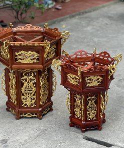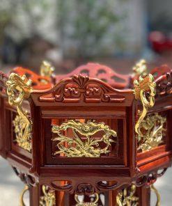 Đèn lồng thả trần gỗ hương dát vàng MS38