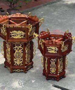 Đèn lồng thả trần gỗ hương dát vàng MS55