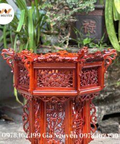 Đèn lồng tứ quý chạm rồng gỗ hương