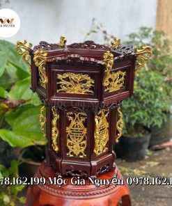 Đèn lồng tứ quý gỗ hương dát vàng 45cm – Món đồ trang trí độc đáo, ý nghĩa được chế tác tinh xảo từ chất liệu gỗ hương quý hiếm.