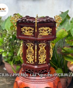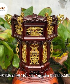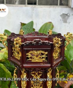 - Đèn lồng tứ quý gỗ hương dát vàng 45cm được hoàn thiện qua nhiều công đoạn: đánh giấy nhám nhiều lần, sơn Pu nhiều lớp cho ra sản phẩm nhẵn phẳng đạt yêu cầu thẩm mỹ cao. Giữ nguyên được vân gỗ rất đẹp.
