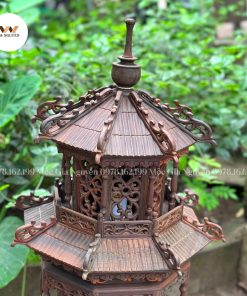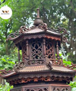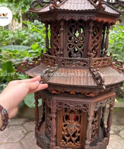 Đèn thờ 2 tầng gỗ trắc cao 1m được làm chất liệu gỗ trắc tự nhiên, đèn thờ không chỉ mang lại vẻ đẹp truyền thống mà còn thể hiện sự bền bỉ và sang trọng.