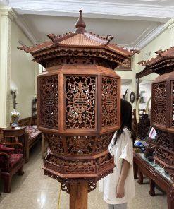- Đèn trang trí gỗ hương cao cấp với kích thước lớn có thể được sử dụng như một phần của trang trí trong phòng thờ, tạo điểm nhấn linh thiêng và trang nghiêm.