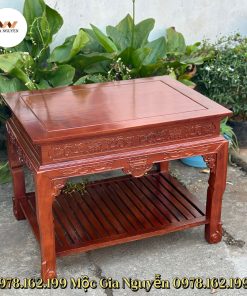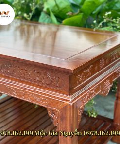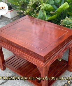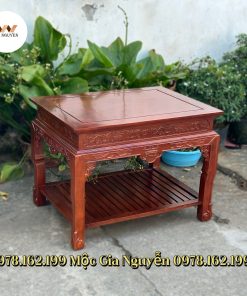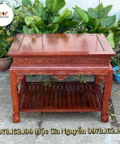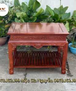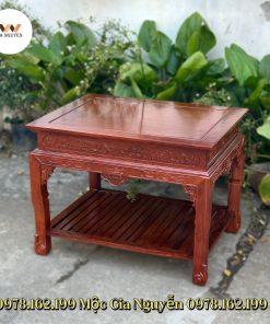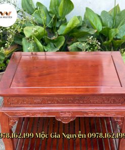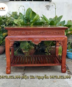 Đôn chữ nhật đục rồng gỗ hương màu hương già 60cm