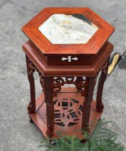 Đôn lục giác mặt đá gỗ hương