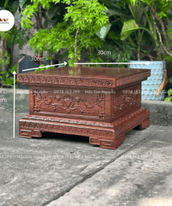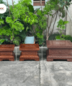 - Đôn gỗ có kích thước mặt vuông 40x40cm, chiều cao 25cm, phù hợp để kê chậu cây, lục bình, bình hoa, hoặc tượng. Kích thước này giúp sản phẩm dễ dàng bố trí ở nhiều không gian khác nhau.