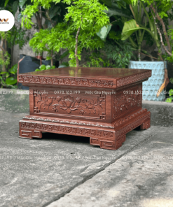 Đôn Gỗ Vuông Hoa Sen Gỗ Hương SDA896