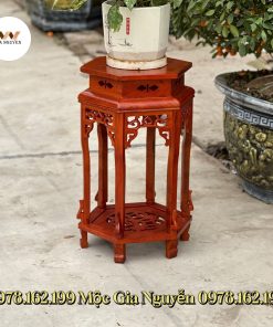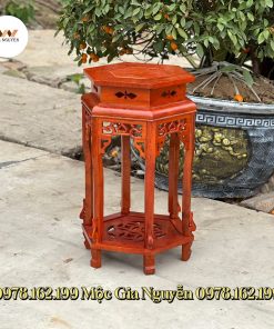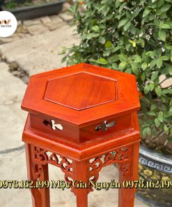 - Đôn lục giác gỗ hương được thiết kế sang trọng. Cũng có thể nói chiếc đôn gỗ hương vừa đa năng, vừa nâng tầm giá trị không gian, vì 2 mặt giúp cho gia chủ có thể kê được nhiều vật phẩm quý giá hơn.