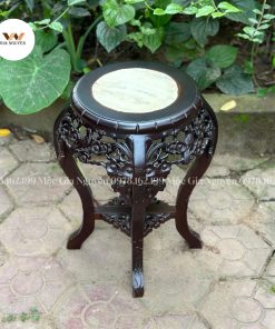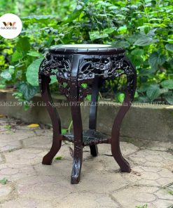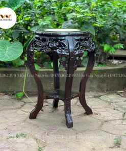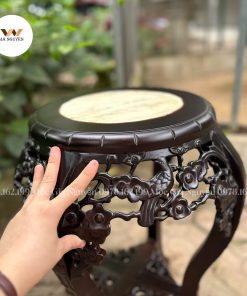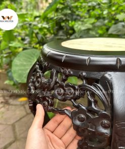 Đôn tròn lối tàu mặt đá gỗ gụ DTMD76
