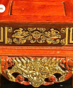 Đôn Vuông Gỗ Hương Chạm Rồng Dát Vàng DR20