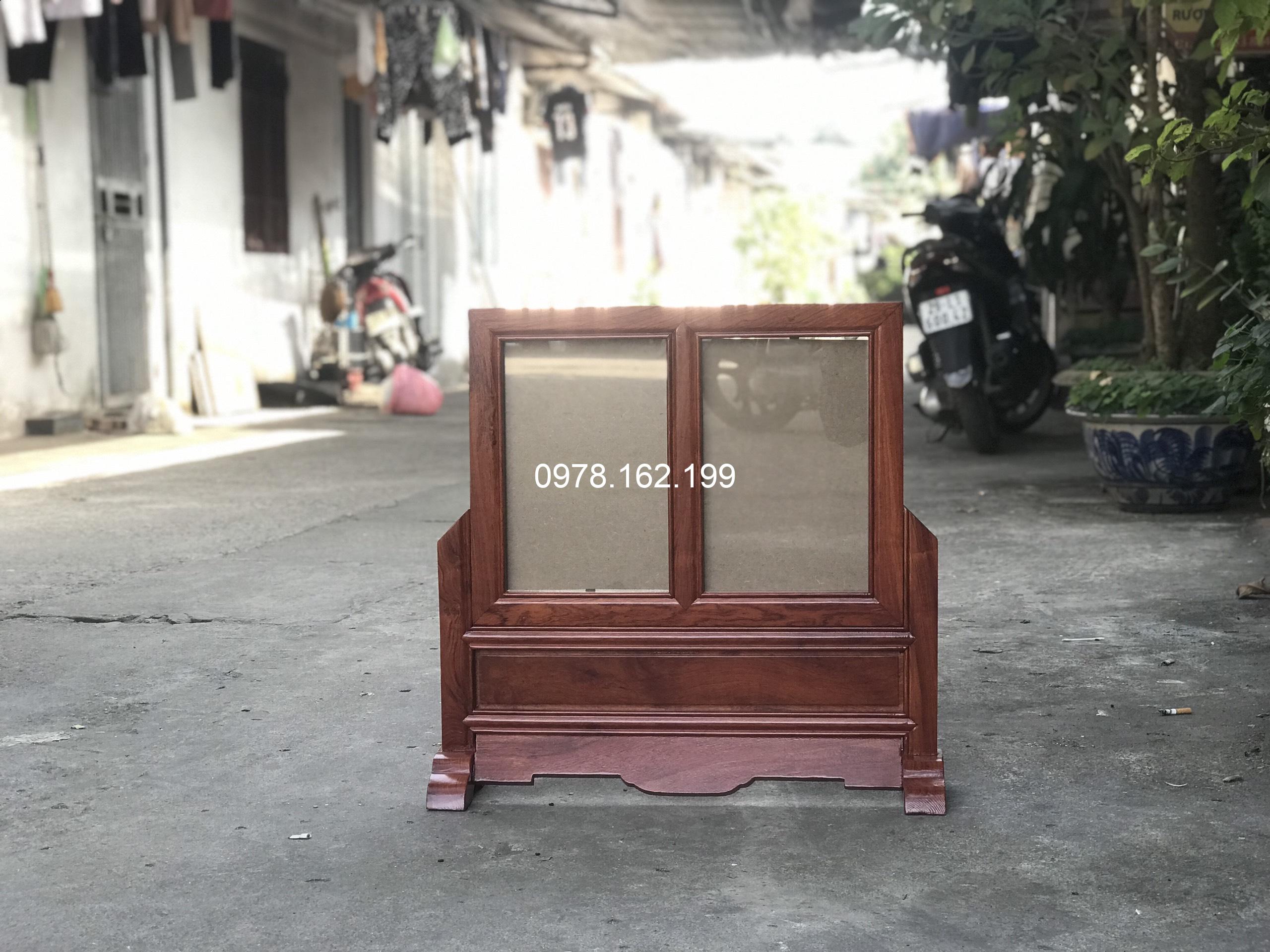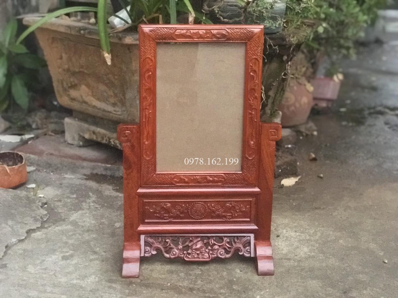 - Khung ảnh gồm 2 phần chính. Phía trên là phần khung viền gỗ hương mặt kính để lồng di ảnh.