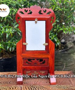 Khung ảnh thờ gỗ hương với kích thước nhỏ gọn phù hợp để vị trí trong không gian phòng thờ. Sản phẩm đem đến vẻ đẹp cổ điển, sang trọng cho không gian tôn thờ.