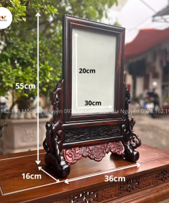 Với kích thước ảnh 20x30cm và kích thước phủ bì cao 55cm x ngang 36cm x sâu 16cm. Khung ảnh phù hợp với nhiều không gian thờ cúng khác nhau.