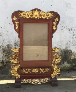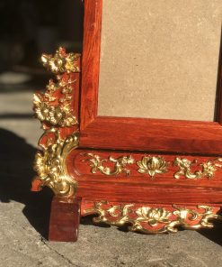 - Mẫu khung ảnh này được chạm khắc họa tiết hoa mai, hoa sen dát vàng cẩn thận.