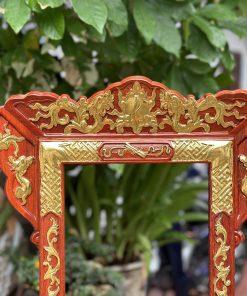 - Mẫu khung ảnh này được chạm khắc họa tiết hoa mai, hoa sen dát vàng cẩn thận.