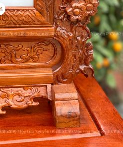Với họa tiết hoa mai tinh xảo được khắc trên gỗ hương cao cấp, sản phẩm mang lại không gian uy nghiêm và trang trọng.