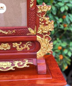Khung ảnh thờ hoa mai gỗ hương dát vàng 20x30cm