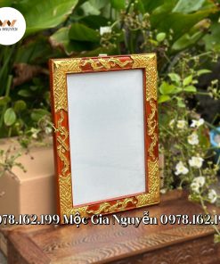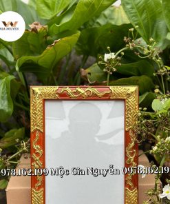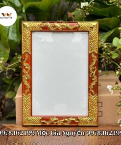 Khung ảnh thờ treo cuốn thư gỗ hương dát vàng 20x30cm