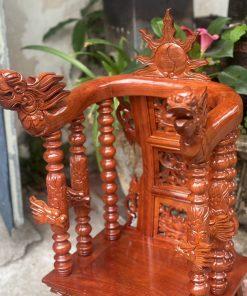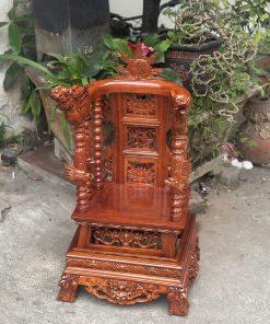 Với kích thước cỡ đại, ngai thờ này tạo ra một ấn tượng mạnh mẽ và trang trọng trong không gian thờ. Sự kết hợp giữa nét đẹp của gỗ hương và sự tinh tế trong thiết kế, cùng với đó là các chi tiết điêu khắc tỉ mỉ.