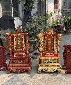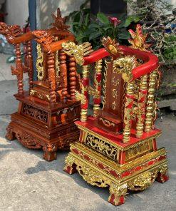 - Về mẫu mã: Khi chọn mua ngai , các bạn nên chọn ngai được chế tác theo mẫu mã truyền thống như: 2 tay ngai là đôi rồng ngậm ngọc minh châu, tượng trưng cho sự tôn nghiêm, mặt tựa được chạm chữ thọ, trên đỉnh là hình mặt nguyệt, xung quanh ngai là những trụ đồng tròn.