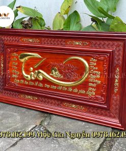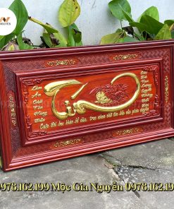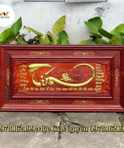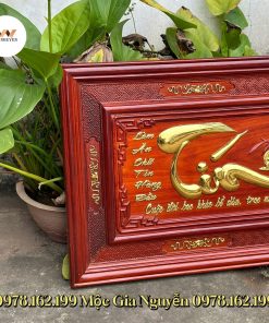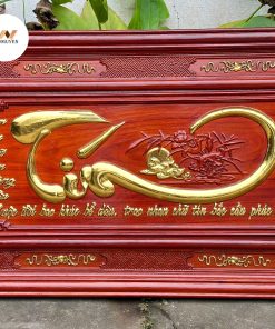 Tranh chữ Tín gỗ hương dát vàng 67x127cm