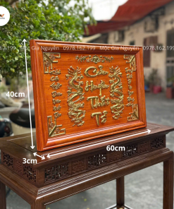 Kích thước: Với kích thước cao 40cm, ngang 60cm và dày 3cm. Tranh phù hợp cho mọi không gian trong gia đình. Không quá lớn cũng không quá nhỏ. Sản phẩm này tạo điểm nhấn nổi bật trên bàn thờ, tủ thờ hay treo tường,…