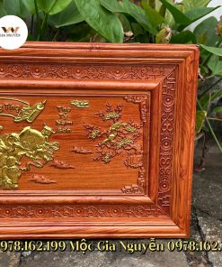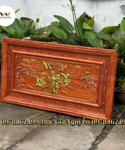 Tranh mừng thọ bà gỗ hương đá dát vàng 67x127cm