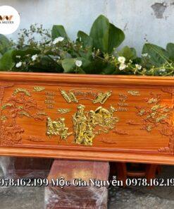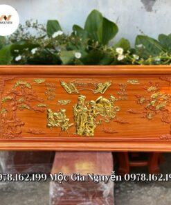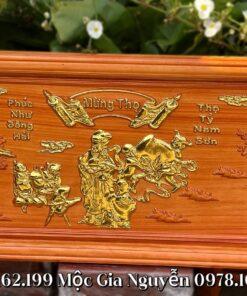 Tranh mừng thọ cụ bà gỗ hương dát vàng 47x107cm