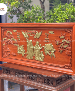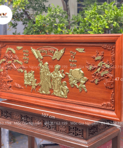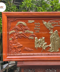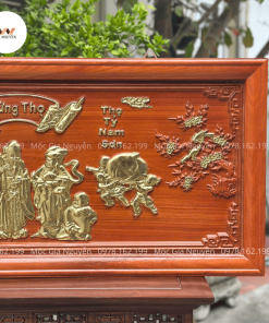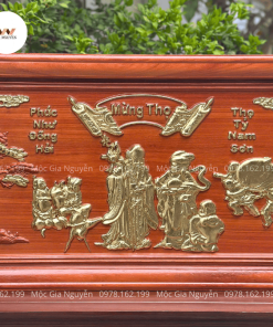 Tranh mừng thọ ông bà gỗ hương dát vàng 47x107cm