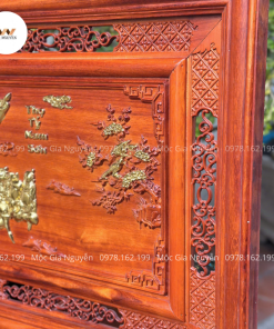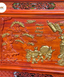 Màu sắc: màu gỗ tự nhiên, phun sơn bóng và dát vàng công nghiệp.