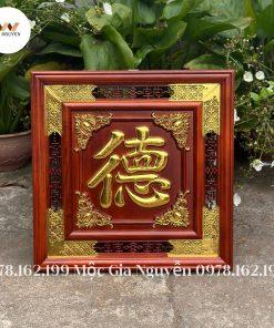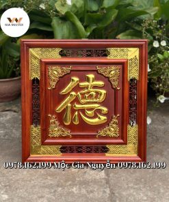Tranh thờ treo tường chữ Đức bằng gỗ hương dát vàng MS1