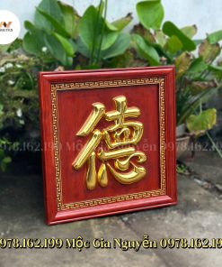 Tranh thờ treo tường chữ Đức gỗ hương dát vàng 67cm