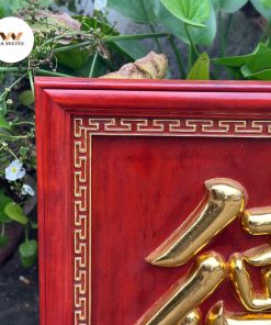 Màu sắc: màu gỗ tự nhiên, chữ và hoa văn vàng óng ánh, tương phản đẹp mắt.