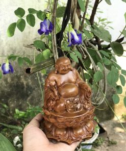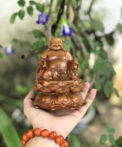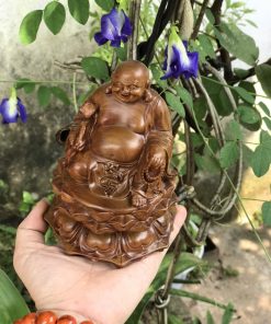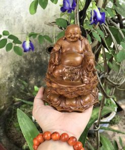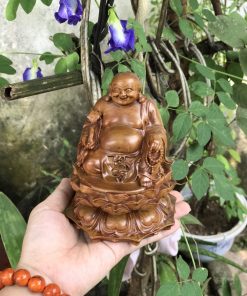 Tượng Di Lặc tọa đài sen gỗ bách xanh