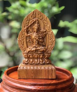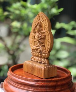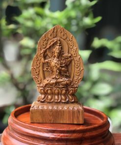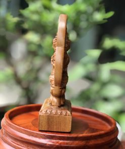 Tượng được làm bằng gỗ bách xanh nguyên khối. Bách xanh là một loại gỗ quý nó tỏa ra một mùi thơm nhẹ nhàng giúp con người được thư giãn, tĩnh tâm.